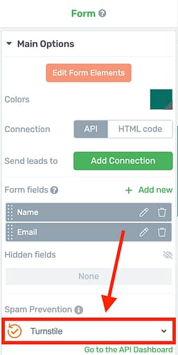 Once you follow through the CloudFlare Turnstile setup (which is a thousand times easier than Google ReCAPTCHA), you'll be able to enable Turnstile spam protection on any lead generation forms built with Thrive products.