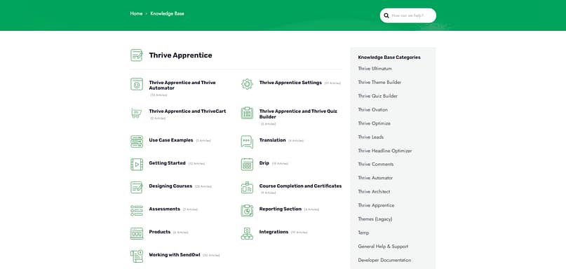 Thrive Apprentice’s documentation is exhaustive, covering all features of the tool in depth, and many articles include a helpful video tutorial.