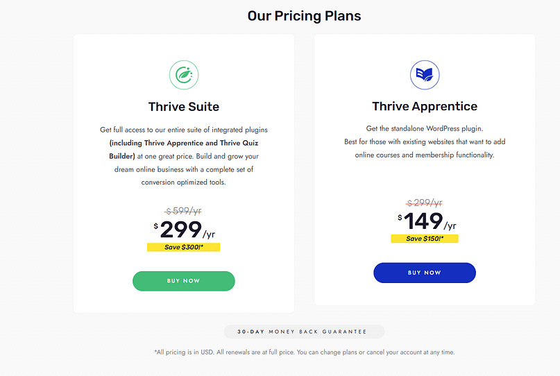 At the end of the day, your course platform needs to fit your budget while delivering the features you need. Both Thrive Apprentice and MemberPress offer different pricing plans based on their unique focus—one as a dedicated course builder and the other as a membership platform. Let’s break down what each one includes so you can decide which offers the best value for your money.