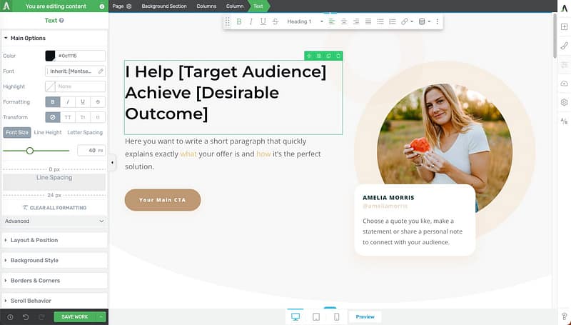 Switch to a web page builder like Thrive Architect, which gives you a what-you-see-is-what-you-get (WYSIWYG) functionality, ensuring the editing stage mirrors the final page.