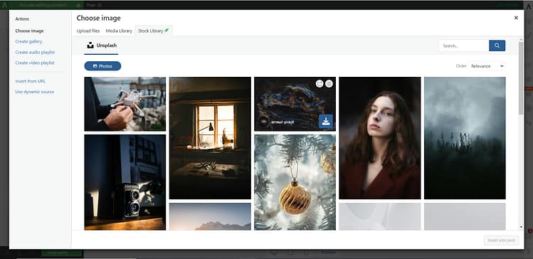Access thousands of visuals in the built-in stock image library in Thrive Architect