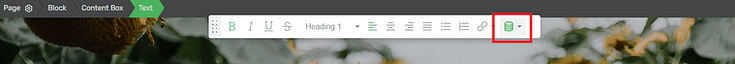 Highlight your placeholder text and click on the database icon in the top toolbar (it looks like a stack of coins). This opens the dynamic text menu. You'll see a list of data sources you can pull from. For this first example, we’ll use the “User Data” option.