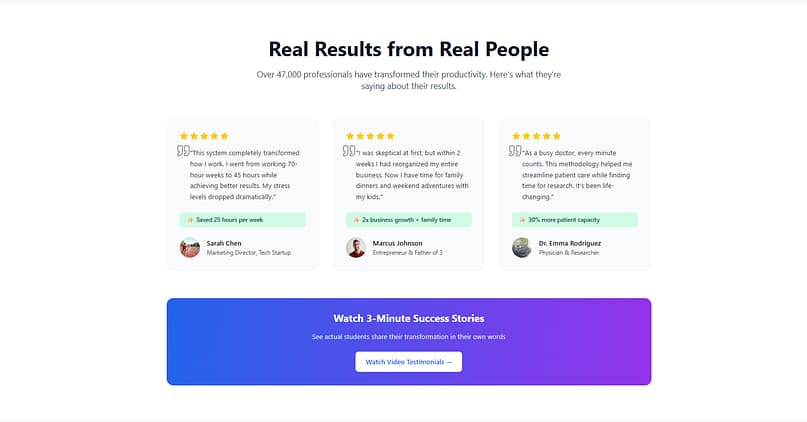 Once you’ve introduced your offer, it’s time to prove it works. Testimonials are one of the most powerful forms of social proof — they assure prospects that others like them have seen real results.