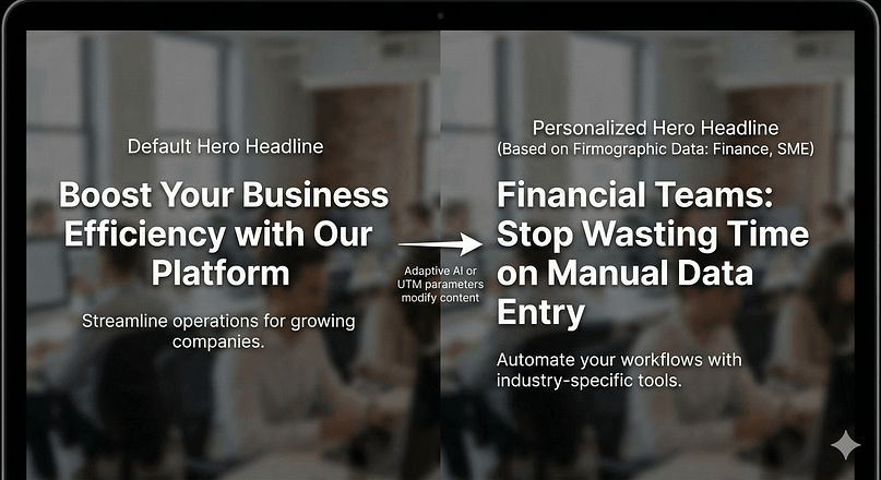 How SMEs Can Recreate the Feeling: You don't need complex AI. You can manually recreate this feeling using conditional content based on UTM parameters. For instance, if a user clicks a link tagged utm_source=linkedin_finance, you can conditionally display a hero headline that says, "Financial Teams: Stop Wasting Time on X." This makes the visitor feel instantly understood.