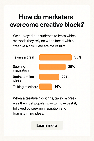 Everyone’s curating industry stats. Almost no one is creating them. That’s your opportunity. Conduct a quick survey of your audience, share aggregated data from your business, or analyze trends you’ve noticed. Then package it into a clean, snackable story.