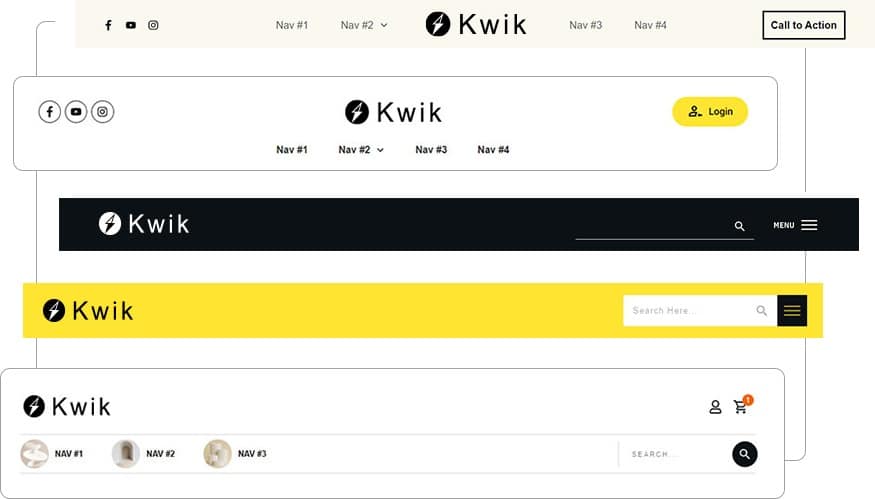 Find a template that suits your brand, tweak it and deploy it. Or spend a little more time building your own custom header from scratch. Now, the freedom to choose is entirely yours. Simply put, Kwik leaves other unimaginative and clumsy 3rd party header plug-ins in the dust. Build a site you and your customers will adore with Kwik.