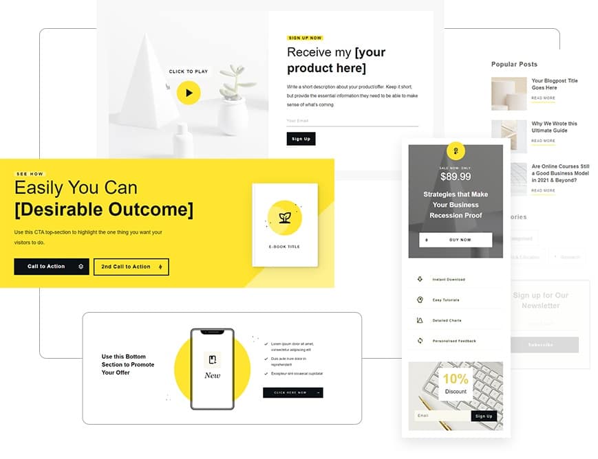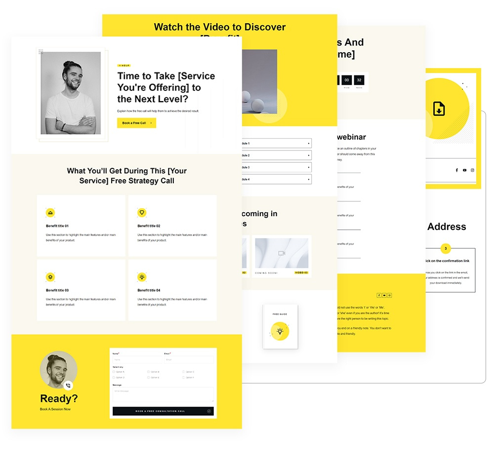 Breeze through setting up sleek & stylish landing pages, lead magnets and sales funnels with these conversion focused designs.