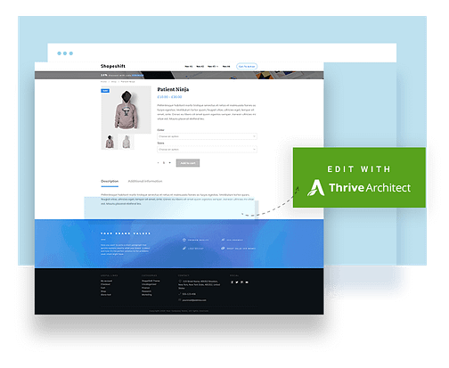 Customize your Product Page images, descriptions, reviews and more with the drag & drop power of Thrive Architect (Thrive Architect Lite is included inside Thrive Theme Builder).