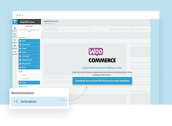 Once the WooCommerce plugin is installed and activated on your site, the Setup Wizard makes downloading and activating your core WooCommerce Page templates — one click simple.