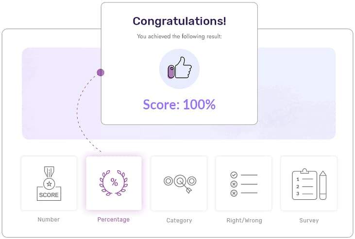 Based on the evaluation type and the weighting you added to answers, Thrive Quiz Builder will automatically calculate and show the obtained results to the student.