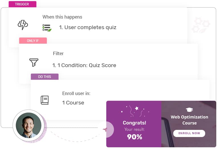 Your student took the quiz, now what? Do you want to show them their score? Unlock the next lesson? Analyze the results? All of this is possible with Thrive Quiz Builder.