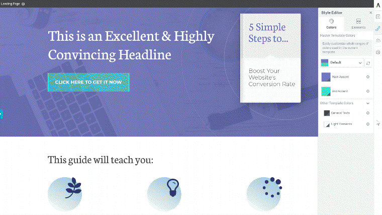 A landing page is not static. You might want to add buttons, new background sections and other elements. That's where the elements style panel comes in.