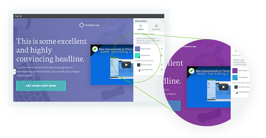 That's why smart landing pages use an advanced color algorithm that not only changes the one color you customize but automatically adapts all the linked colors.