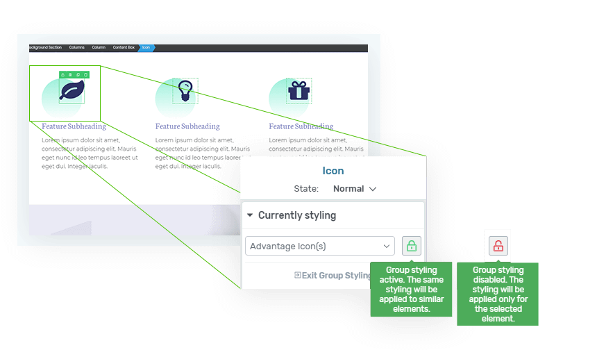 Want to style one group element differently from the others? Simply unlock it for full design freedom.
