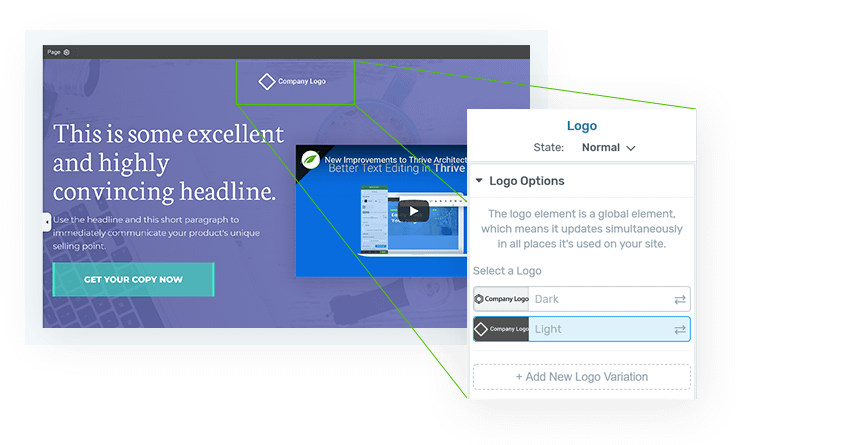Smart Landing Pages use the Thrive Architect Logo element. This means you can set your logo once and every time you load a new Smart Landing Page, your logo is already in there.